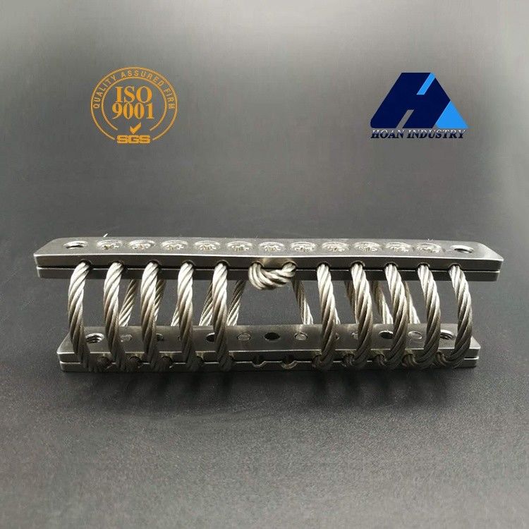Los aislantes de vibración están compuestos por cables de acero inoxidable roscados a través de barras de aluminio que se montan para un aislamiento eficaz de choques y vibraciones.